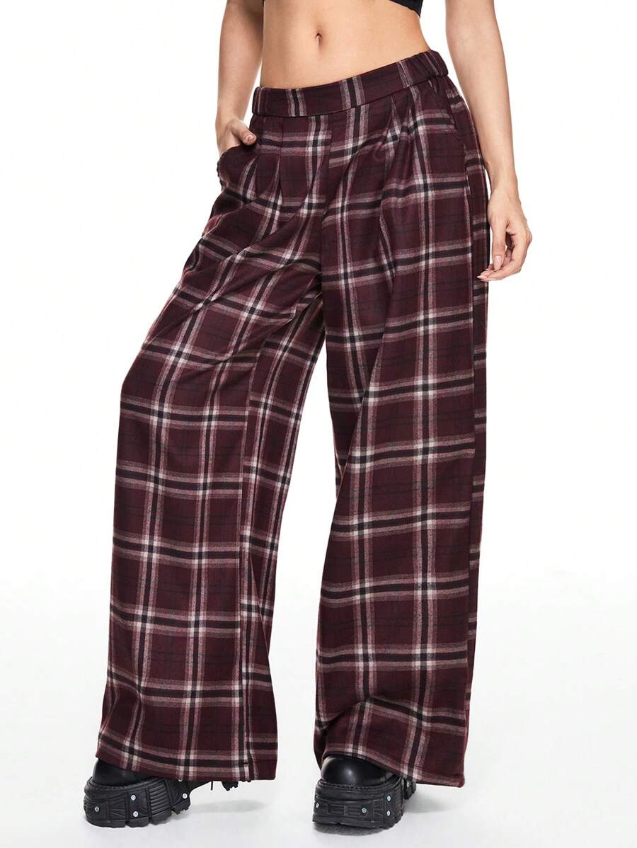 Grunge Punk Retro karierte lässige weite Damenhosen