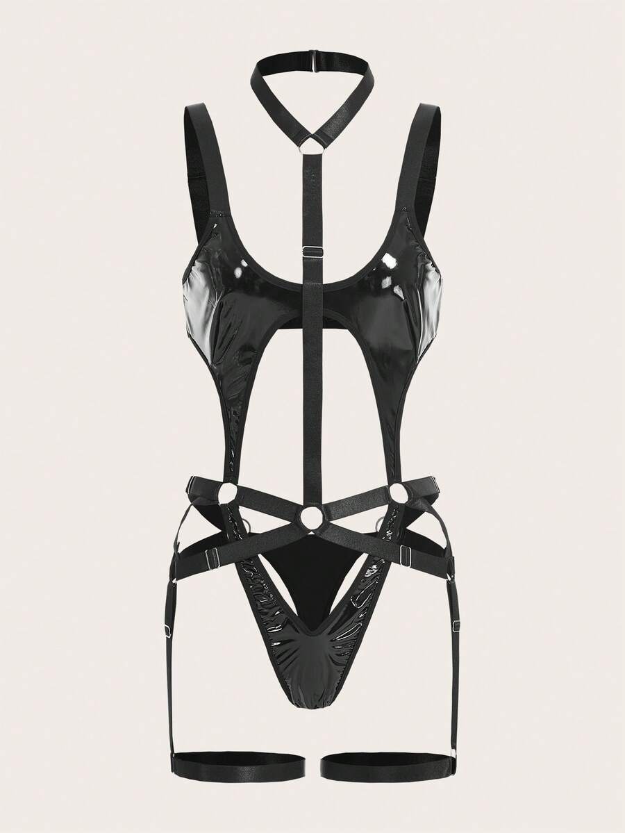 Grunge Punk Teddy Body mit Ring Bindung, Harness