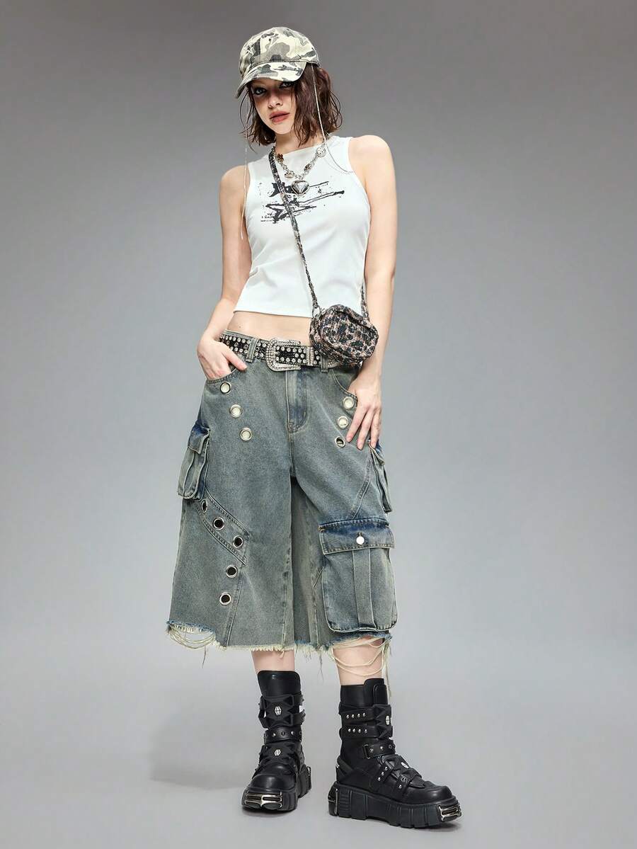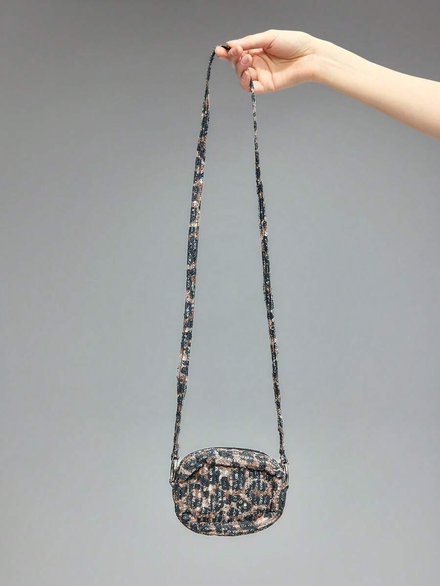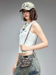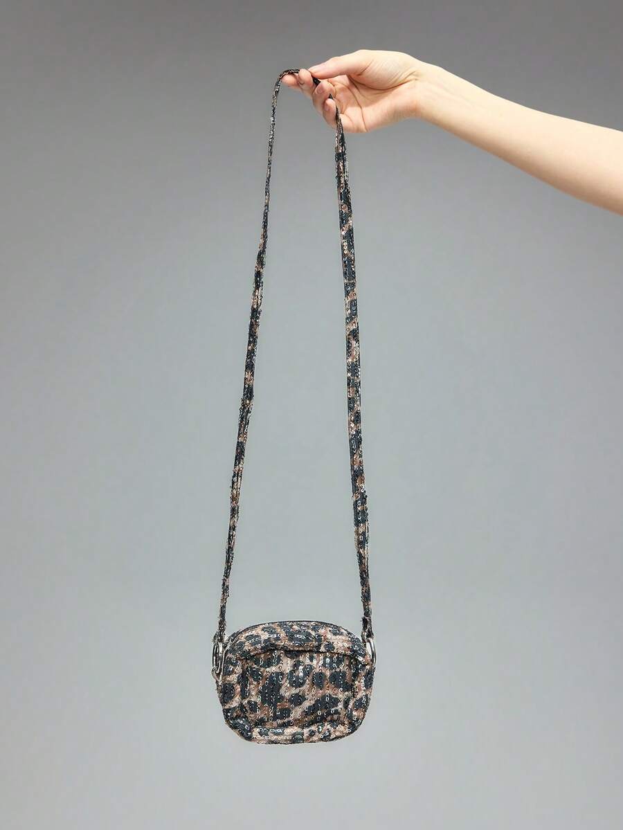 Grunge Punk Gepäcktasche mit Leoparden-Pailletten-Muster, minimalistisch und praktisch multifunktional