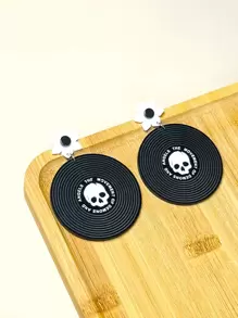 Grunge Punk Runde Ohrringe mit Schädel & Buchstaben Grafik