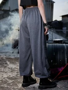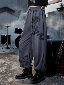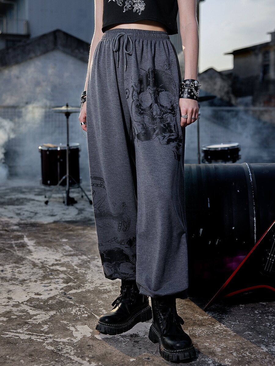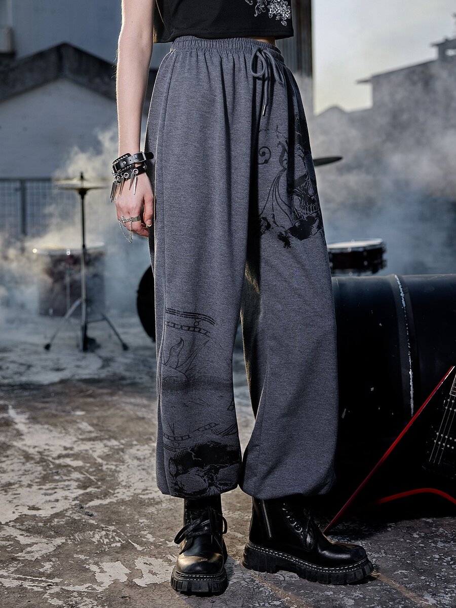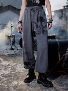 Grunge Punk Jogginghose mit Schädel Muster, Tunnelzug,
