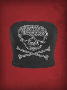 Grunge Punk Tube Top mit Schädel Strass Dekor