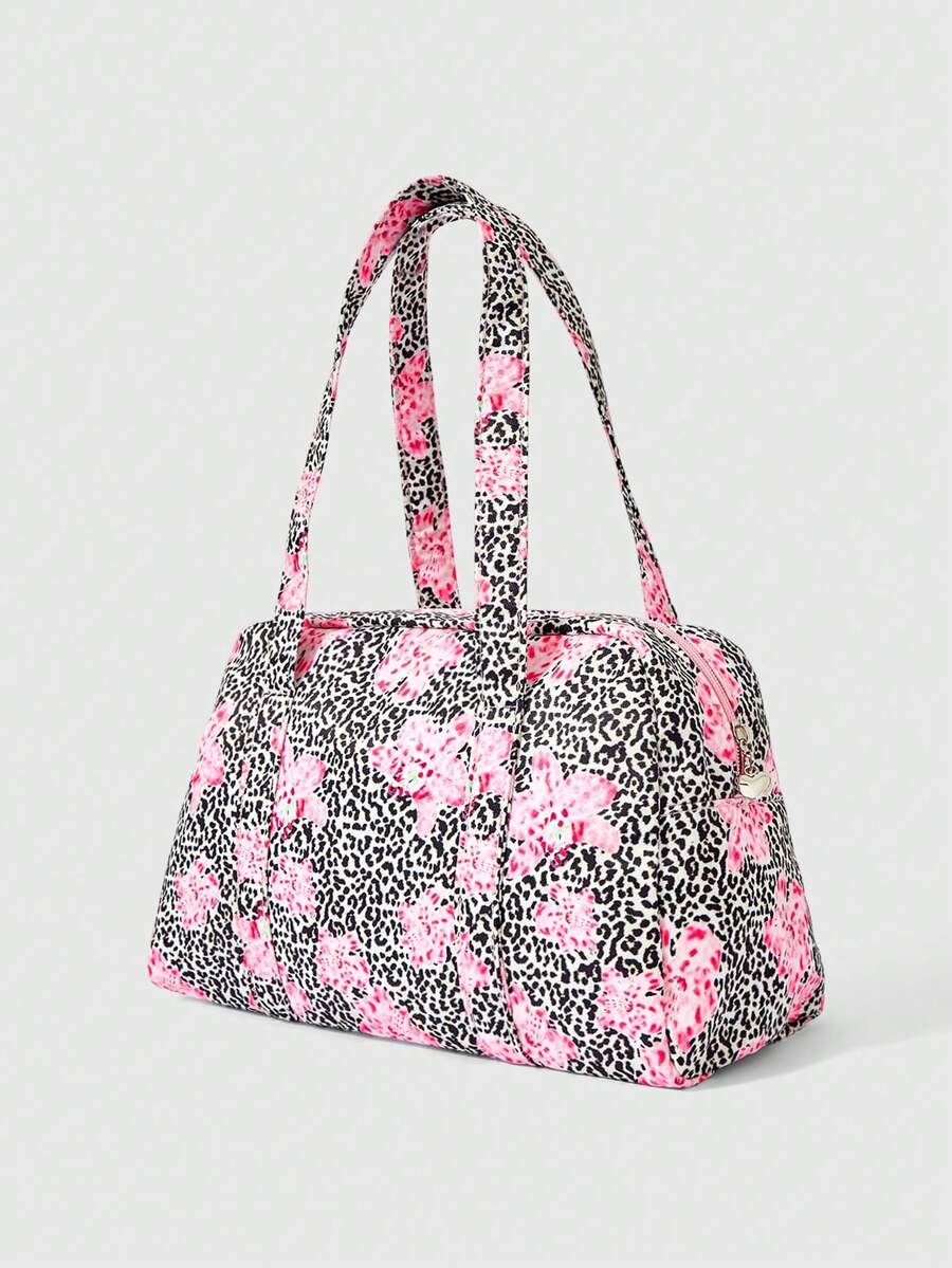 Grunge Punk Spice Girl Schwarz-Pink Leoparden-Muster Shopper Tasche
