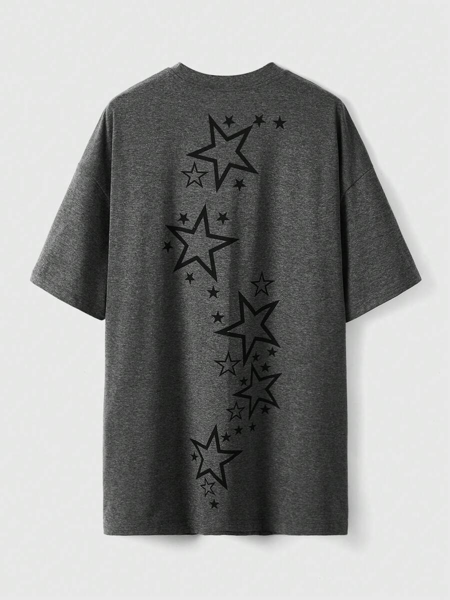 Grunge Punk Drop Shoulder T-Shirt mit Sternenmuster