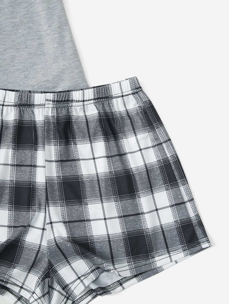 Grunge Punk Pyjama-Set mit Sterne Muster Raglanärmel T-Shirt und karierter Shorts, Schule