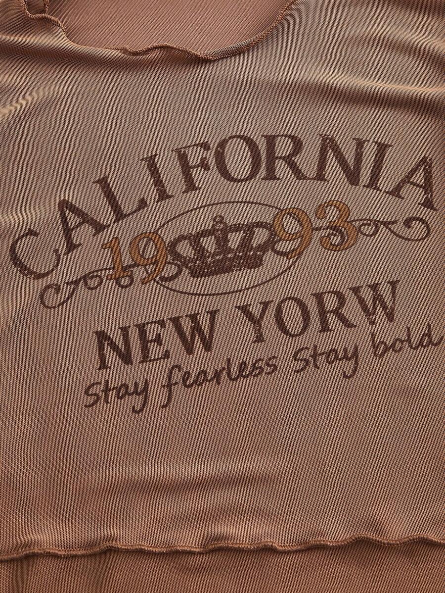 Grunge Punk Streetwear Outdoor Briefdruck Durchsichtige Mesh-oberteil