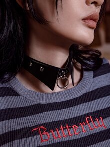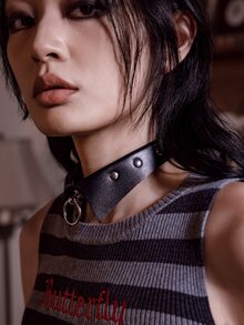 Grunge Punk Halsband mit Nieten Dekor, Ring Anhänger