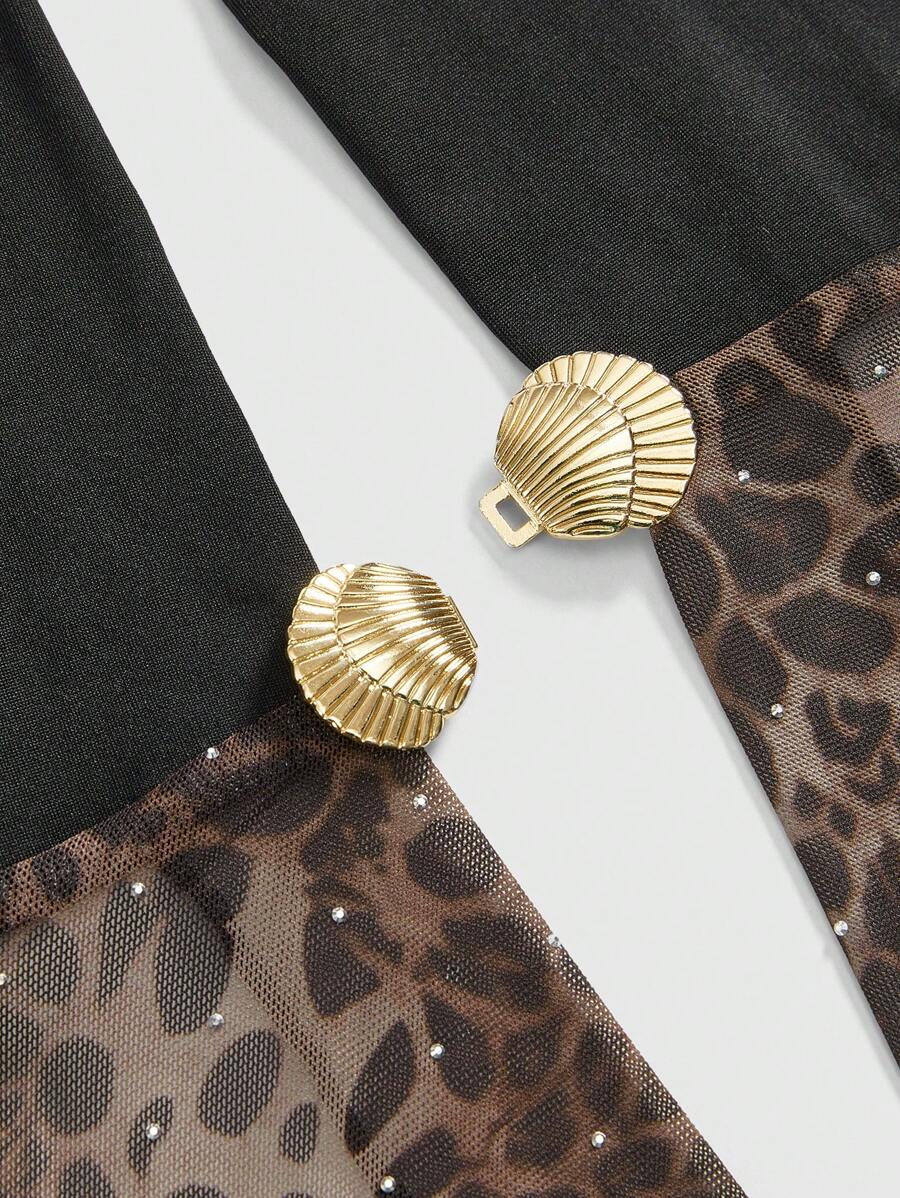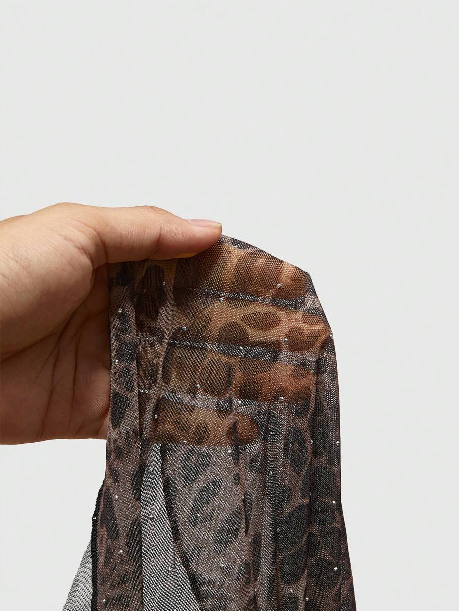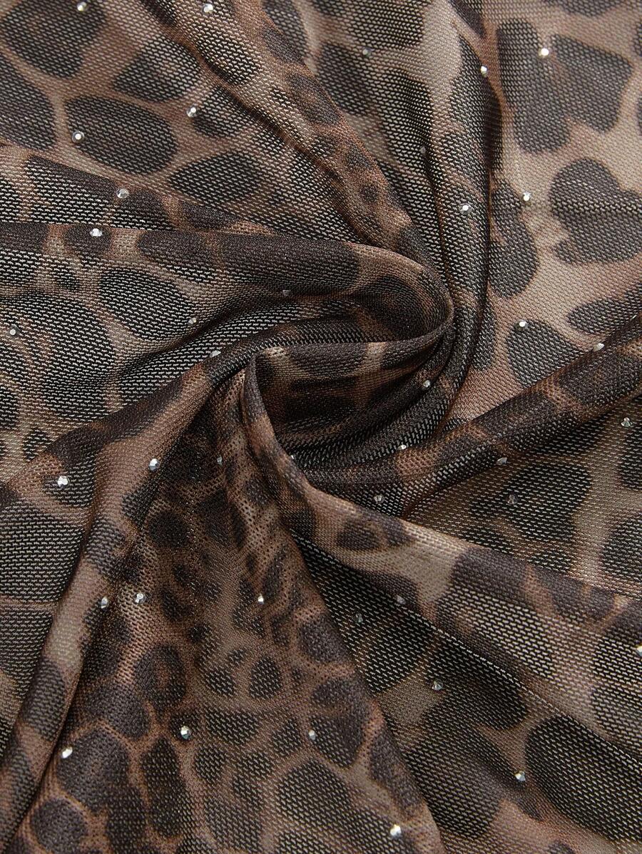Grunge Punk Sommer Musik Festival Mode - Wild Chic Retro Leoparden Muster mit Strass & Metall Kette Neckholder Enges asymmetrisches Saum Damen Top