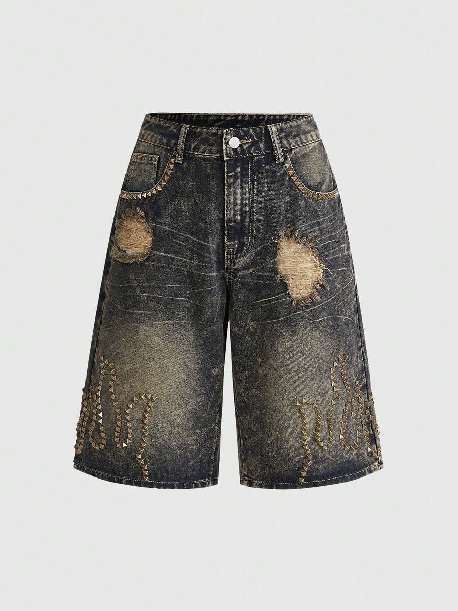 Grunge Punk Neue Sommer Damen Zerrissene Destroyed Denim-Shorts, Flammen Nieten Muster, modischer Straßen-Stil