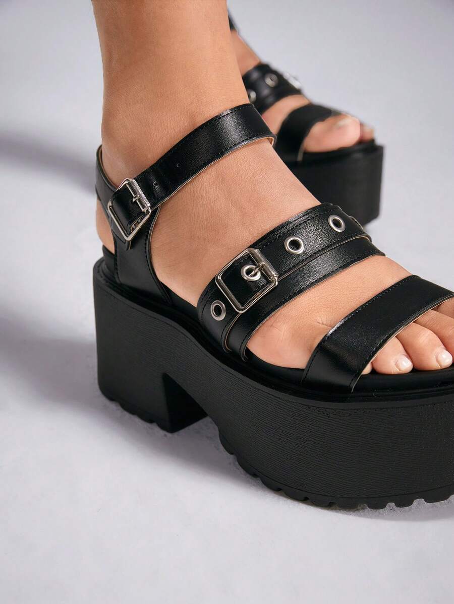 Grunge Punk Sommer Damen Schwarze Römische Sandalen Mit Dicker Sohle, Plattform, Punk, Wasserdicht, Gotisch, Knöchelriemen, Keilabsatz, Strand Sandalen