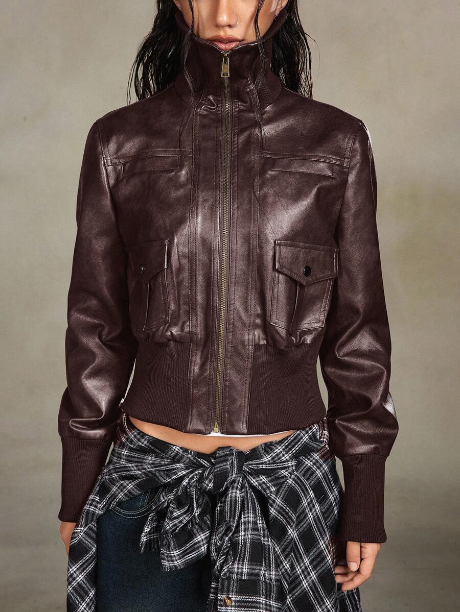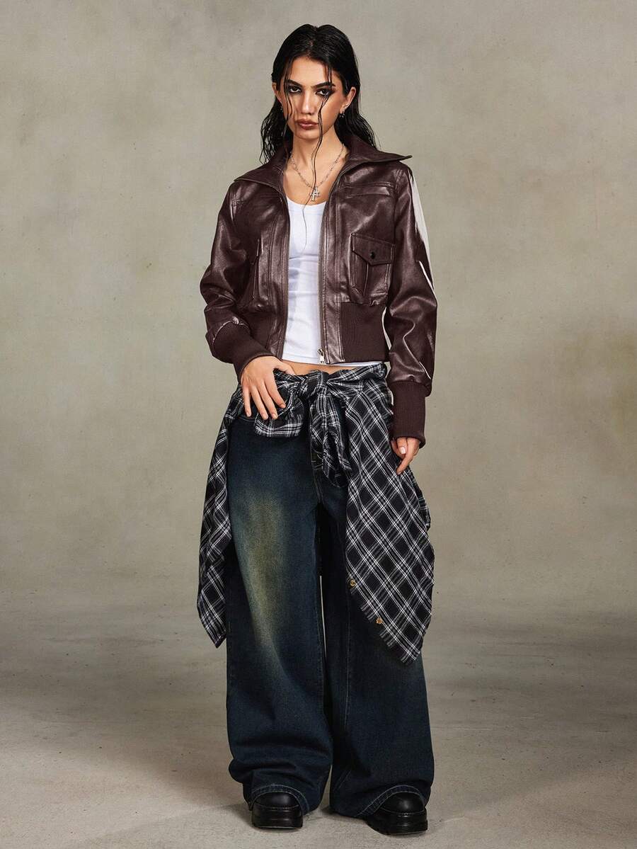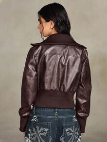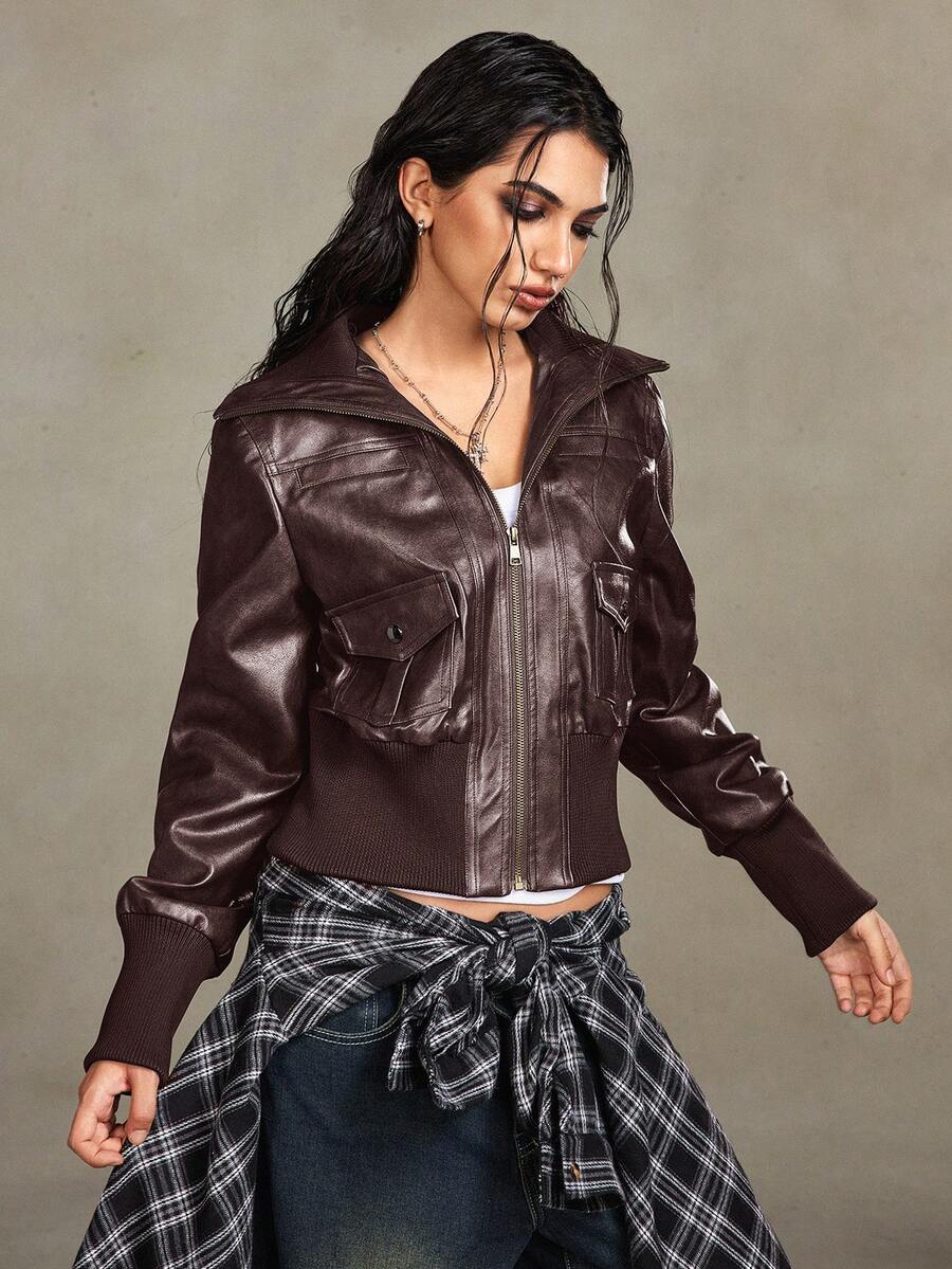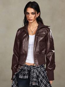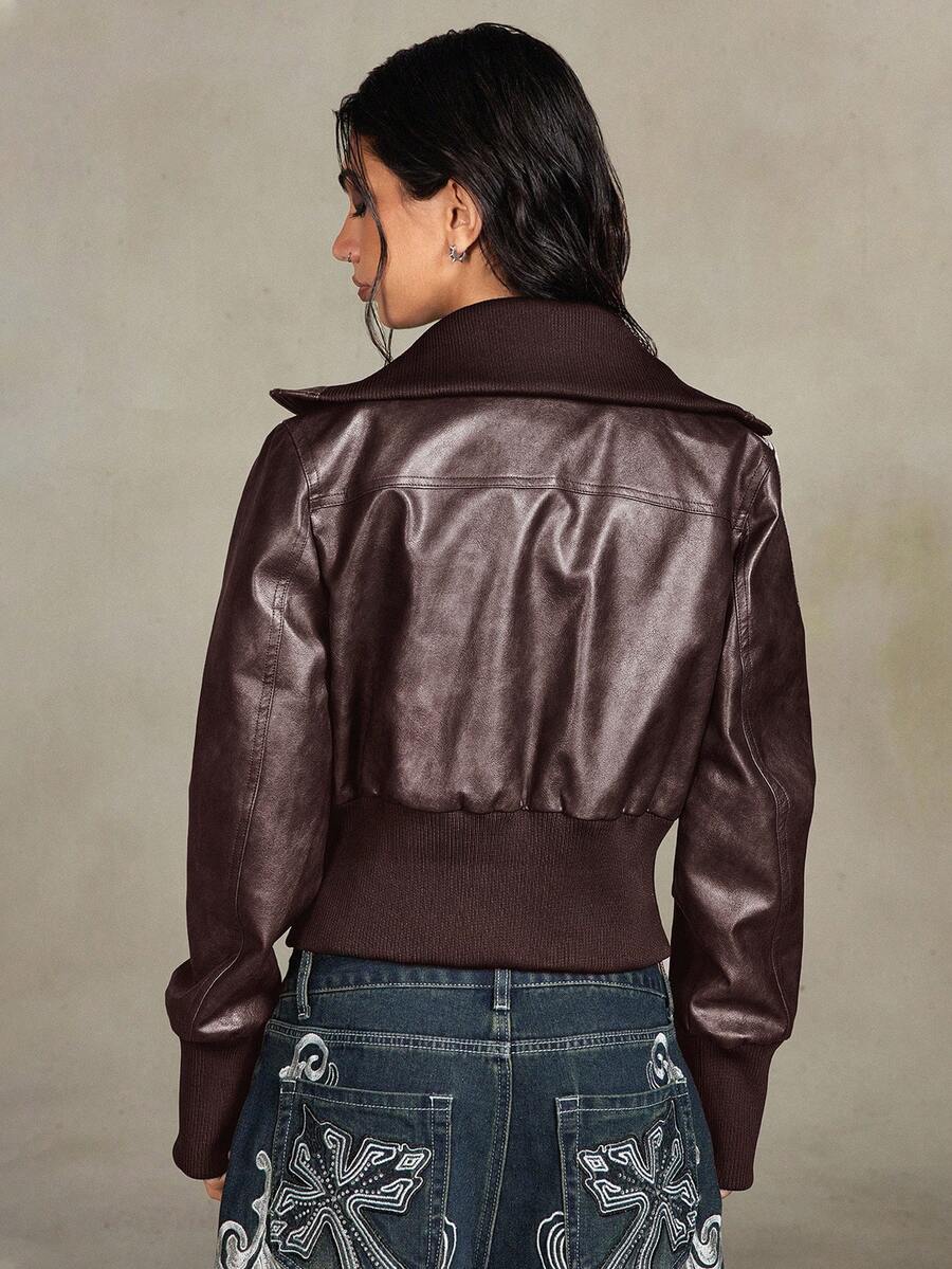 Grunge Punk Vintage Street-Style Biker Jacke aus abgenutztem PU für Frauen