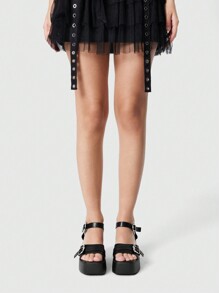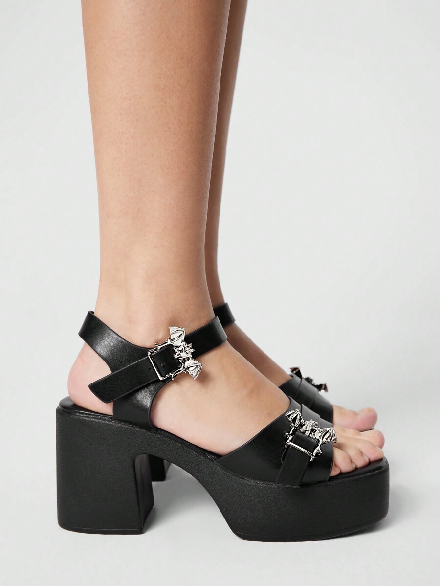 Grunge Punk Damen Gothic Schwarz Runde Zehenkappe Plattform Keilabsatz Komfort Sandalen mit Fledermaus Schnalle
