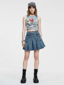 Grunge Punk Damen Punk Y2K Vintage Millenials Subkultur Denim Rock mit Ultra Kurzer Taille und A-Linie, Schule