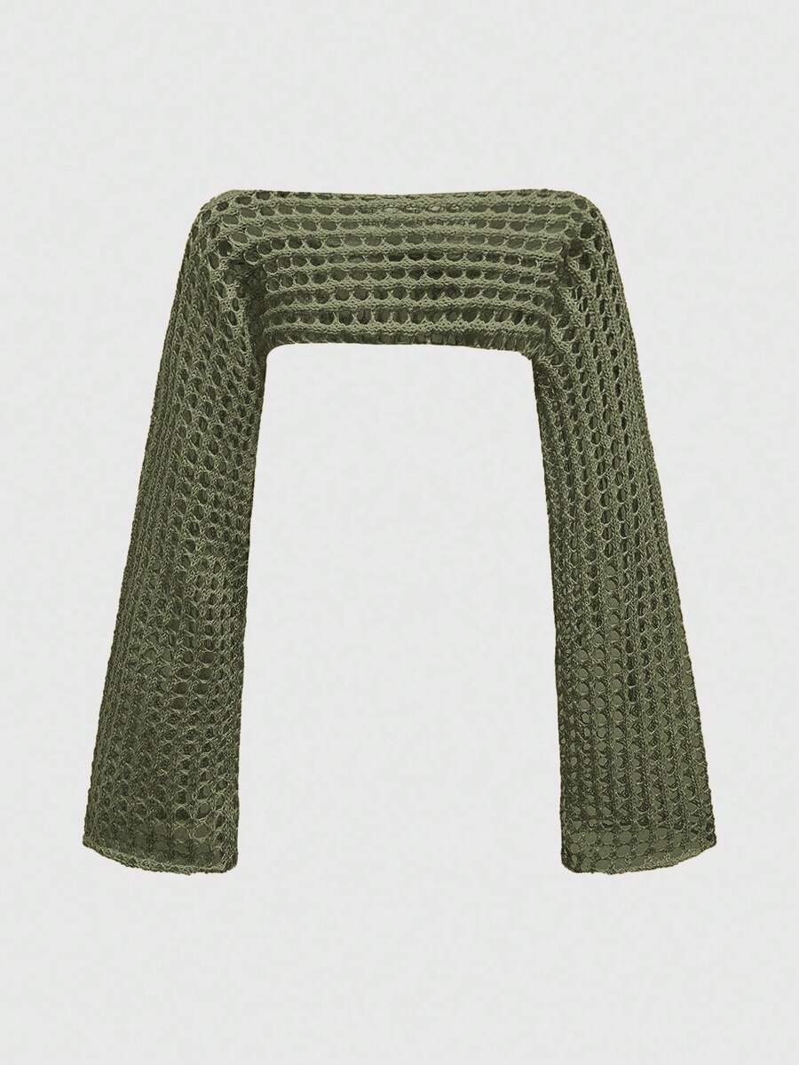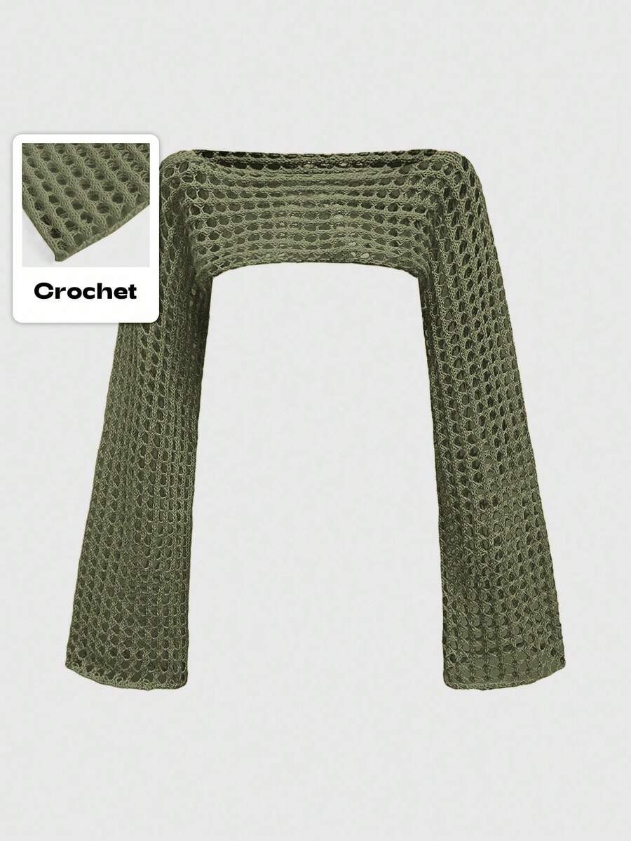 Grunge Punk Damen Herbst Glockenärmel Fake Häkel Ausschnitt Kurz Pullover
