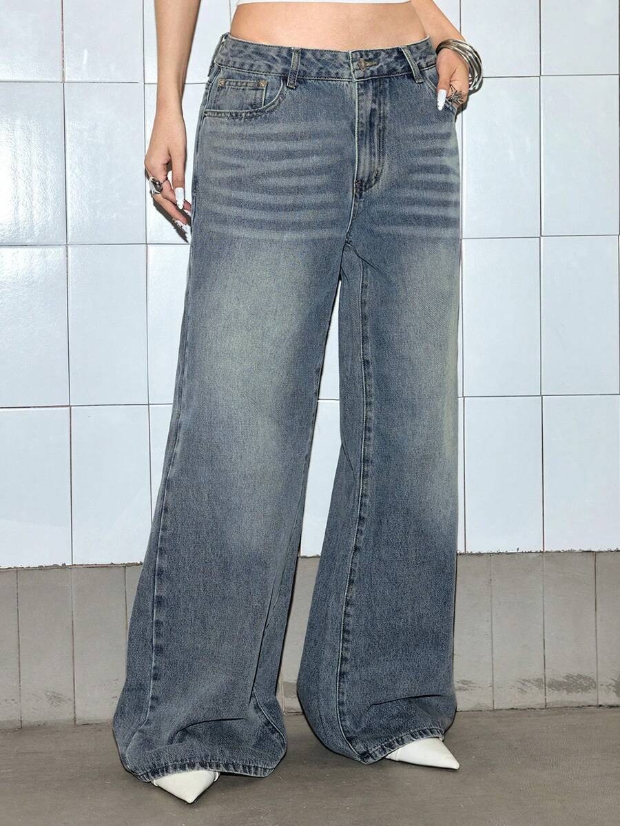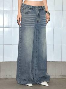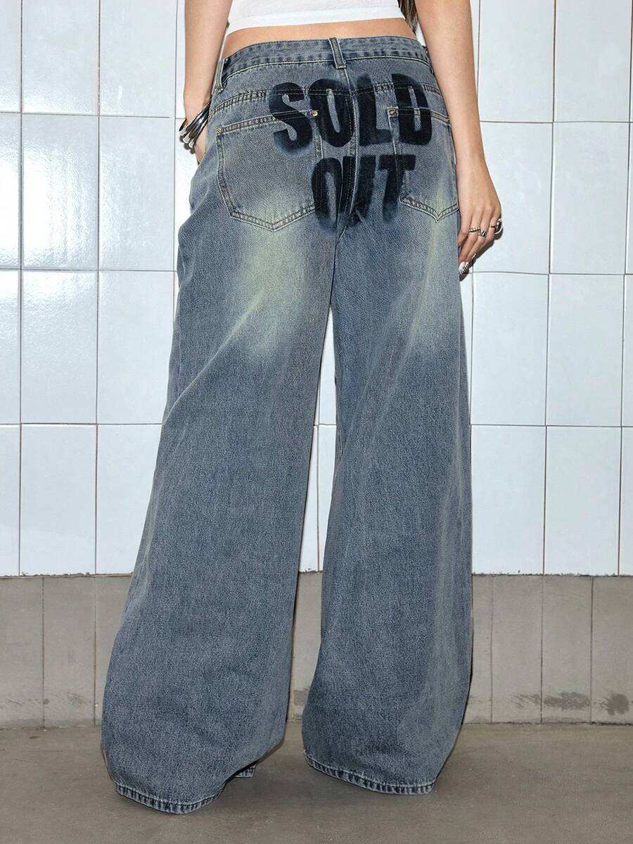Grunge Punk Damen Lässig Bedruckte Jeans