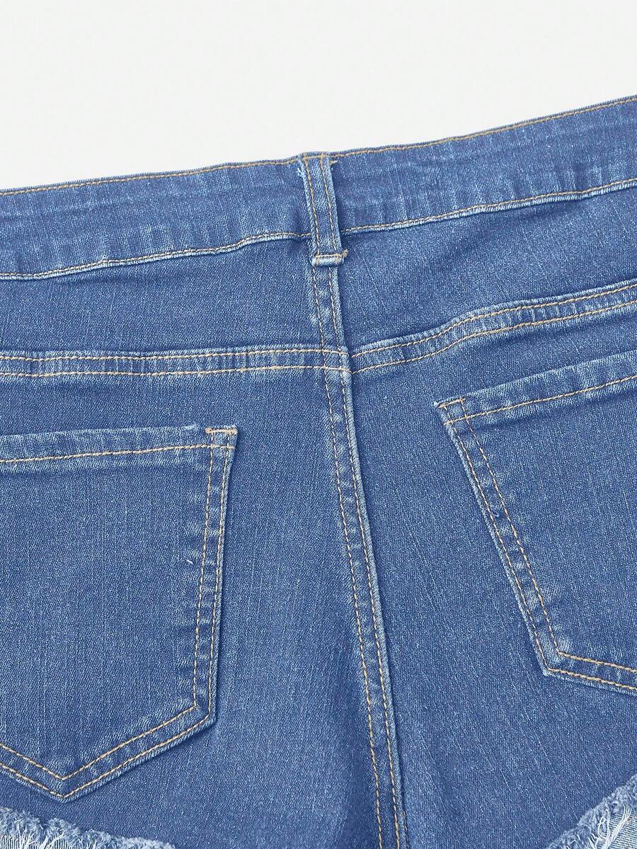 Grunge Punk Damen lässige, vielseitige Skinny Jeans-Shorts mit umgeschlagenem und ausgefranstem Saum, dehnbar