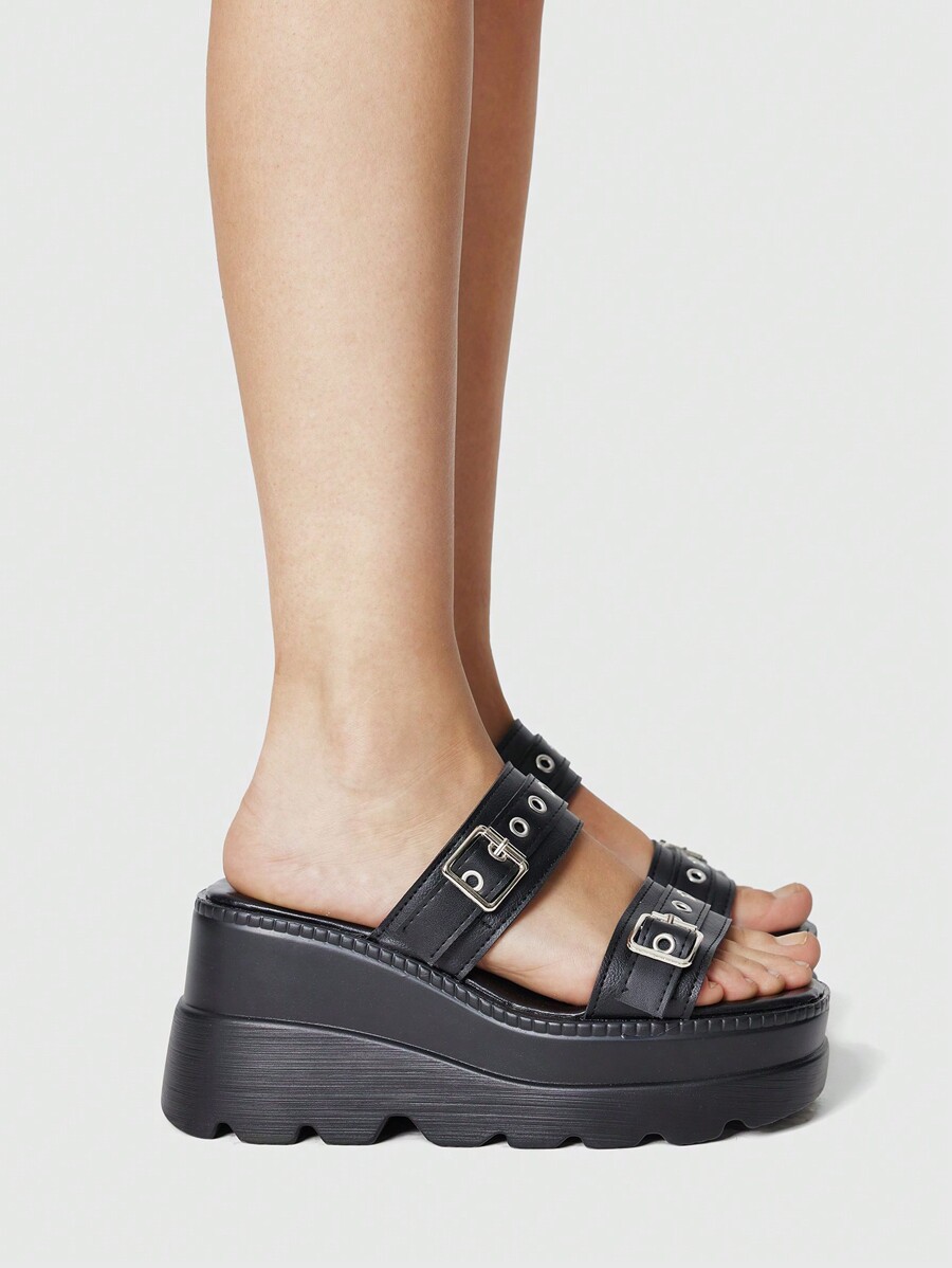 Grunge Punk Damen Punk Goth Stil Plateau-Schuhe, Römische Strandschuhe, nitenbesetzte Kleid-Sandalen, Keilabsatz Plateau-Sandalen