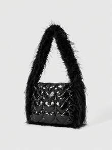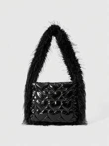 Grunge Punk Damen Mode Herz Textur Fellpatchwork Umhängetasche