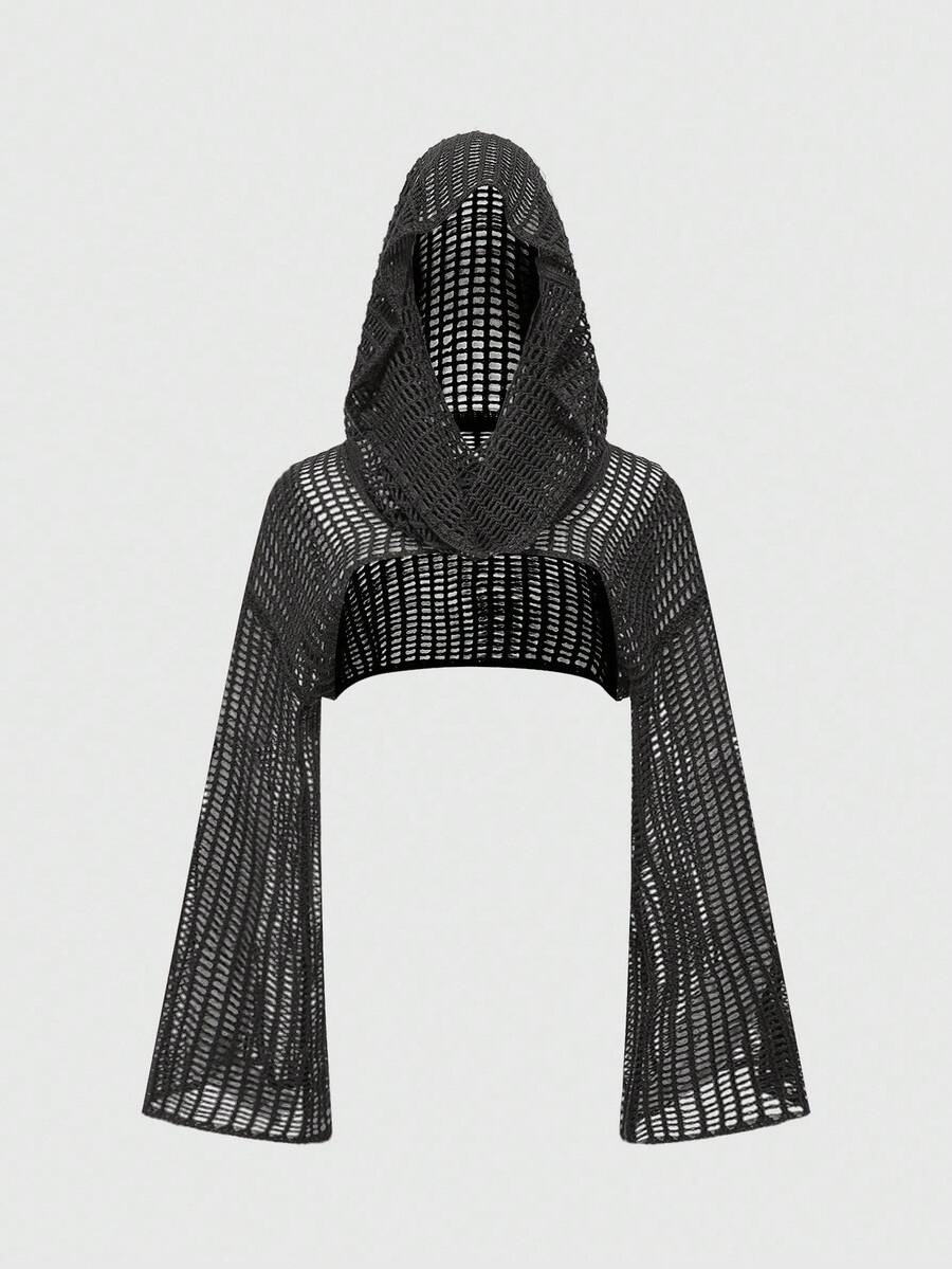 Grunge Punk Damen Ausgestellter Y2K Grunge Lässig Kapuzenpullover mit Ausschnitten