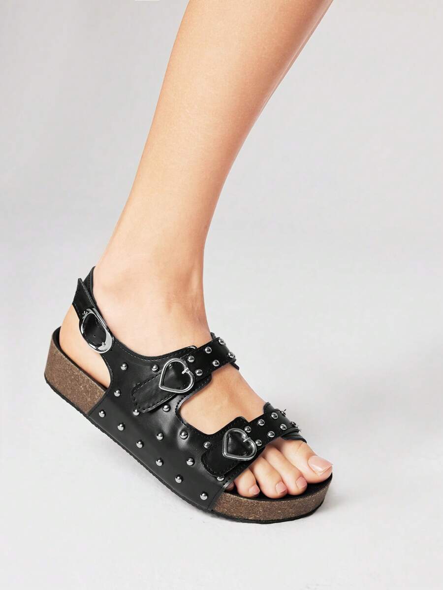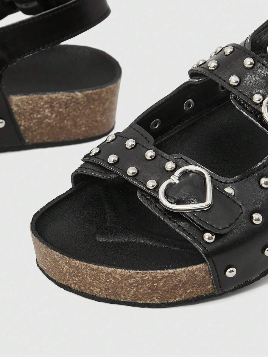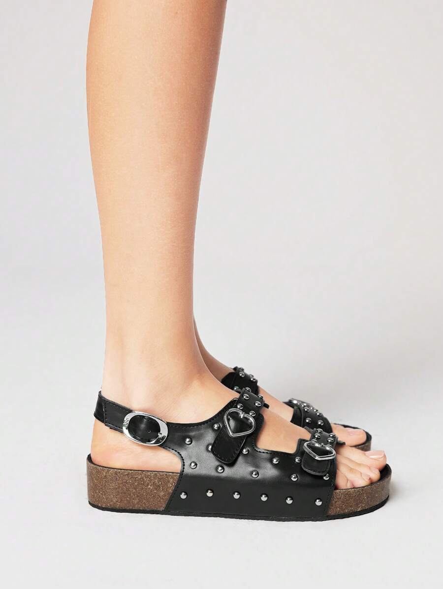 Grunge Punk Damen Punk Goth Plateausandalen, Sommer offene Zehen verstellbare Schnalle Römische Beach Flache Hausschuhe