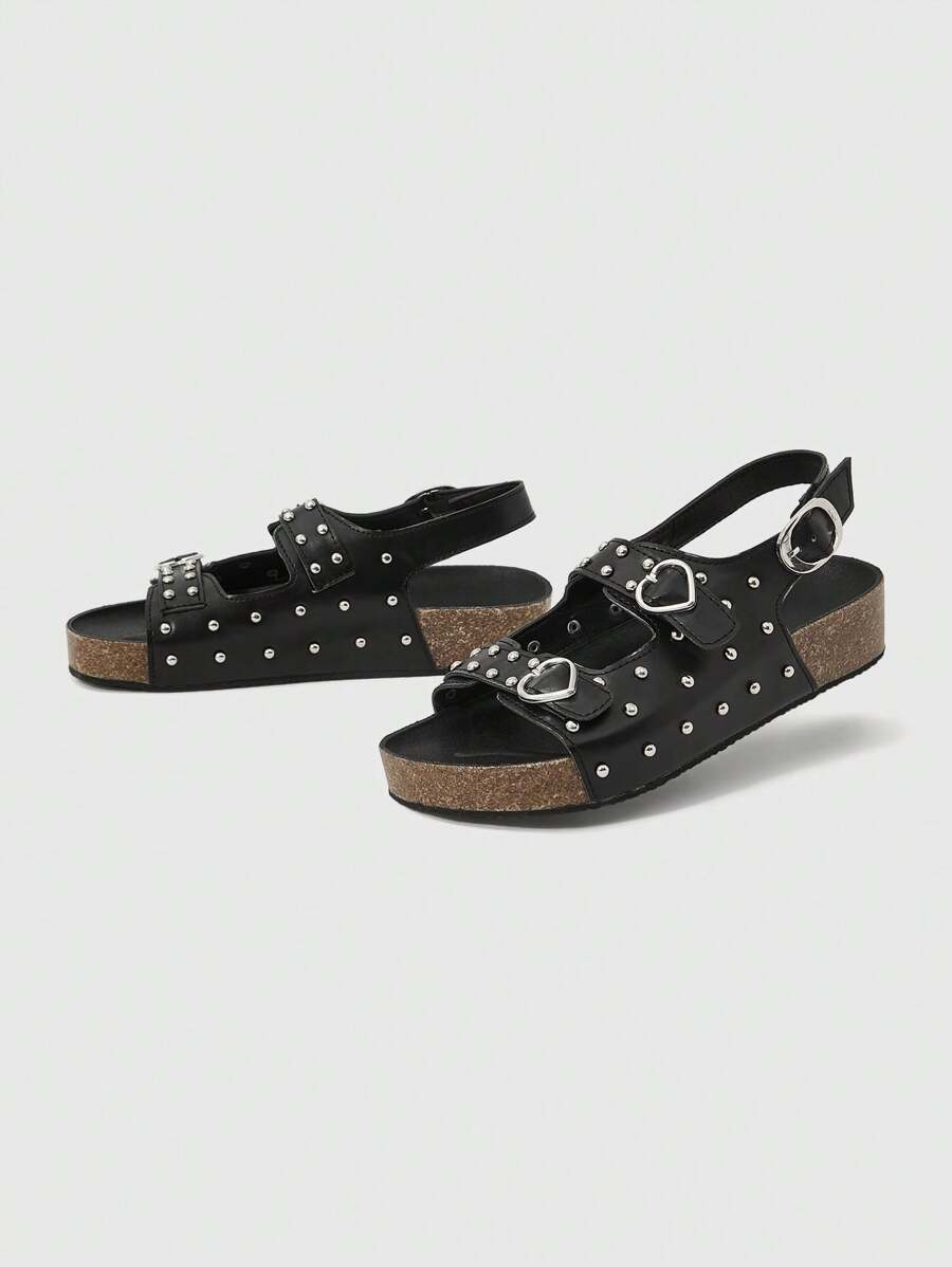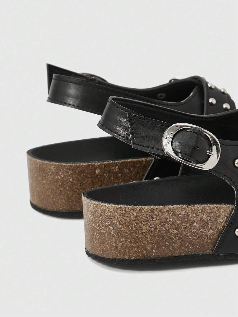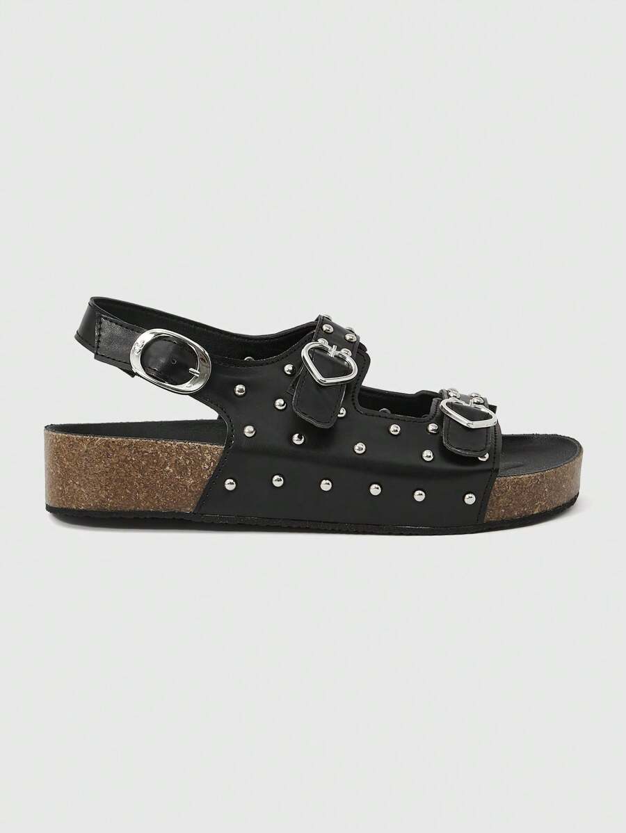 Grunge Punk Damen Punk Goth Plateausandalen, Sommer offene Zehen verstellbare Schnalle Römische Beach Flache Hausschuhe