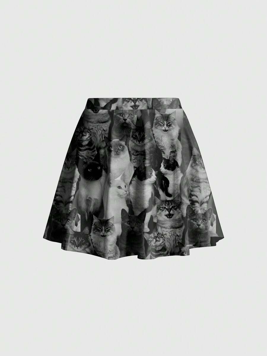 Damen Sommer 3D Kätzchen Muster süßer sexy Rock, Anime Stil