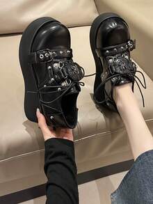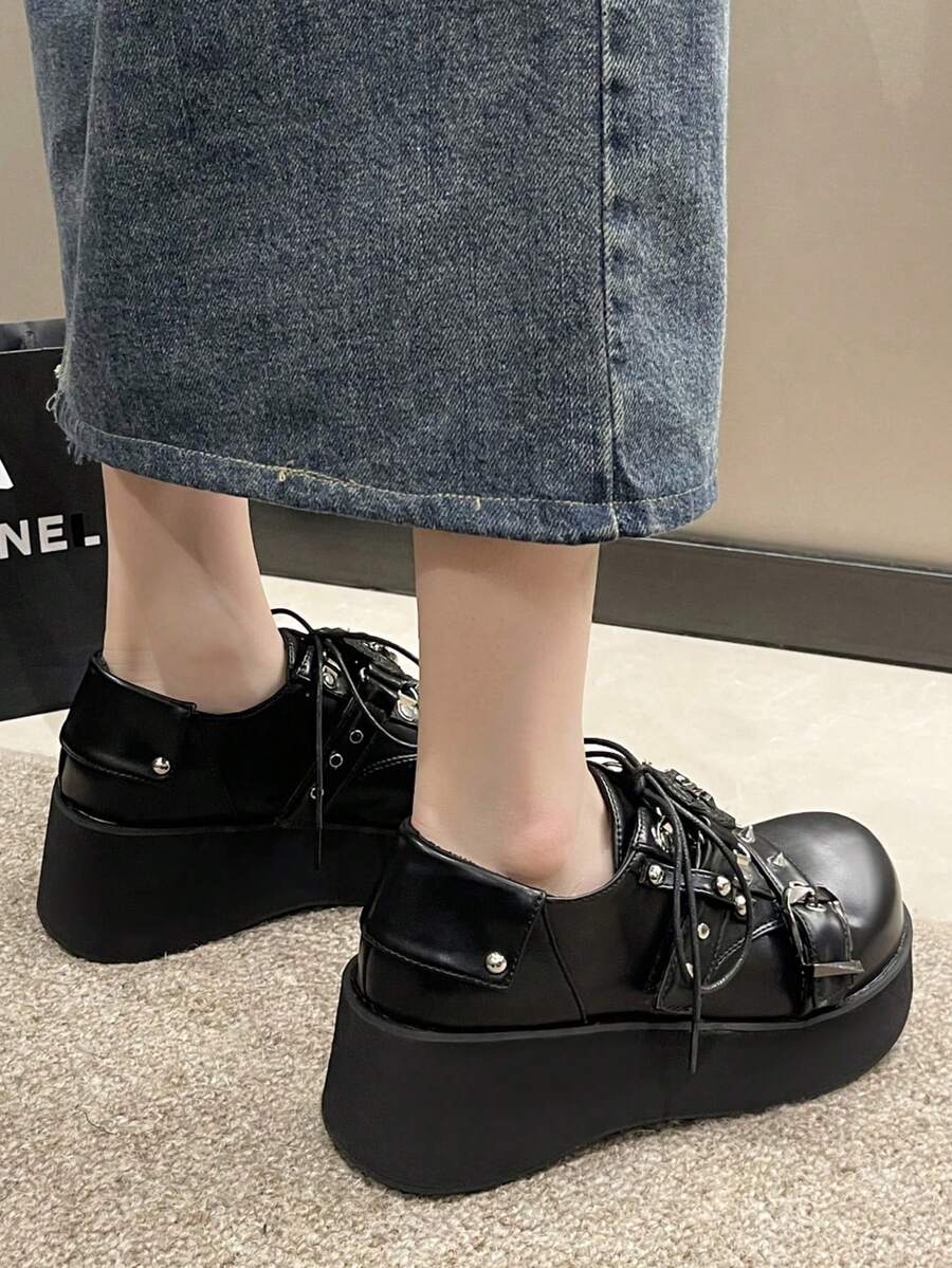 Grunge Punk Damen Keilabsatzschuhe Mit Dicker Sohle