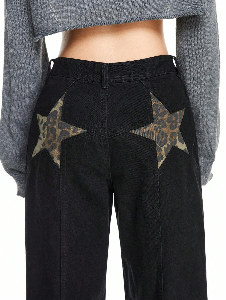 Grunge Punk Y2K Relaxed Straight Leg Jeans mit niedrigem Bund und Stern Muster