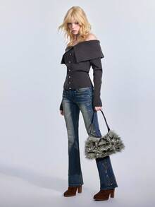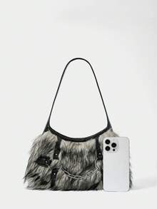 Grunge Punk Y2K Kunstfell Umhängetasche mit Kettenelement, Punk Gothic flauschige Hobo Tasche, Streetstyle Handtasche