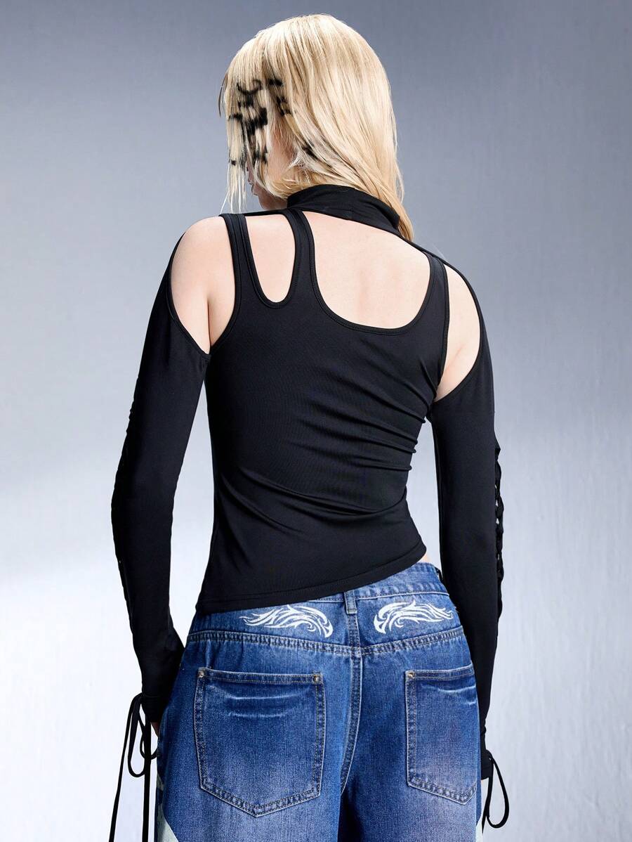 Grunge Punk Y2K futuristisches perforiertes umkehrbares kurzes Camisole Top T-Shirt