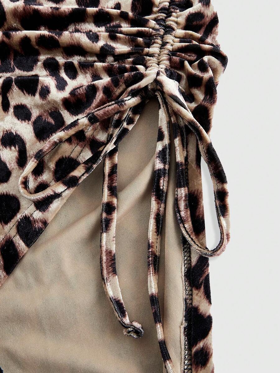 Grunge Punk Y2K Gyaru Leoparden Muster Crop Top für Frauen mit Raffung an der Seite und Rippstrick aus Samtmaterial