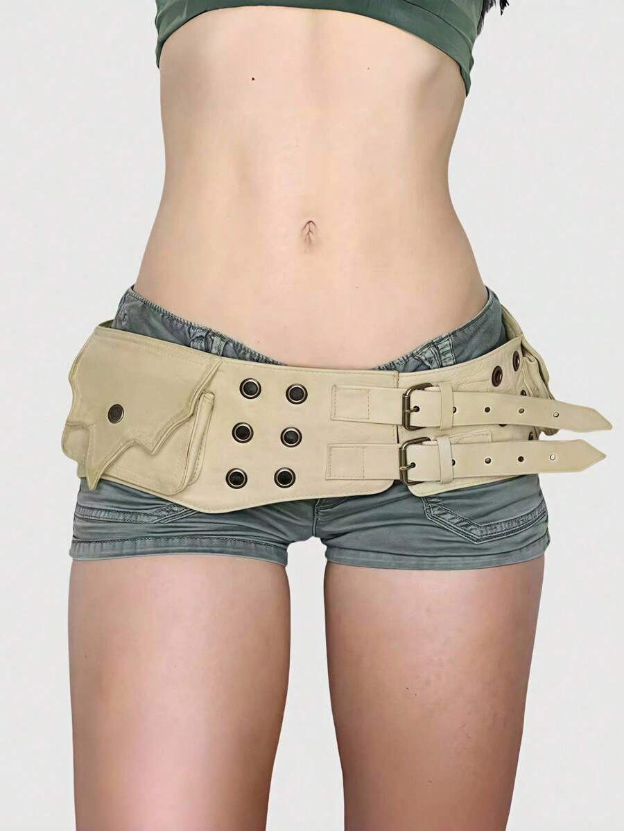 Grunge Punk Y2K Punk Stil schwarze Metall Nieten Ösen Multi-Taschen Hüfttasche mit verstellbarem Metallschnallengurt, Streetwear personalisierter Mode Breiter Gürtel für Frauen