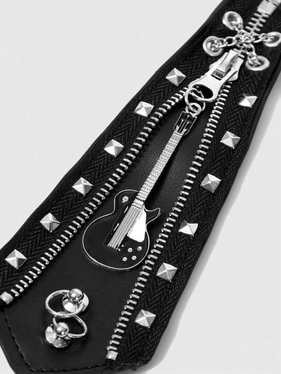 Grunge Punk Y2K Punk Stil Nieten-Reißverschluss Metall Totenkopf Unisex Krawatte, Gothic Dunkel Stil Accessoires, einzigartiger personalisierter Schmuck, Halloween