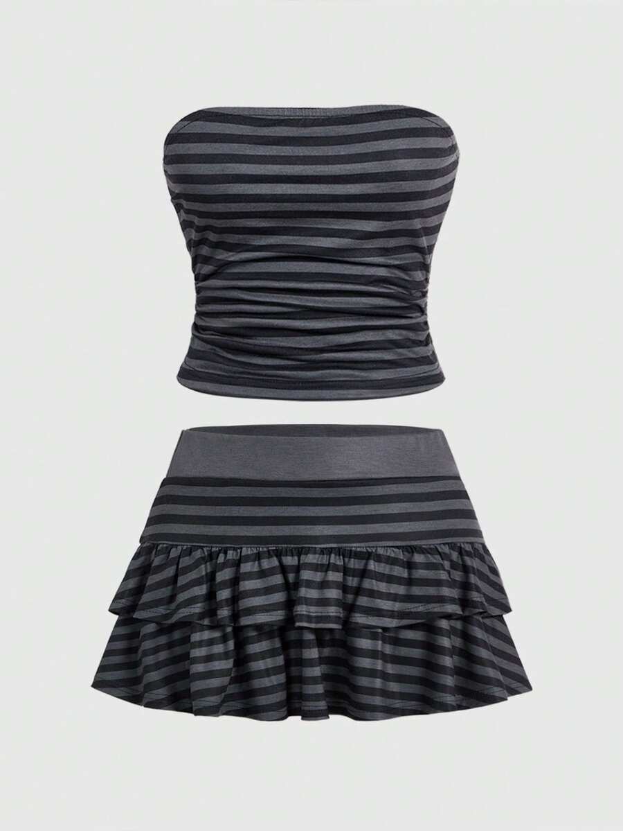 Grunge Punk Y2K sexy Camouflage Allover-Muster Crop Top und Mini-Rock 2-teiliges Set