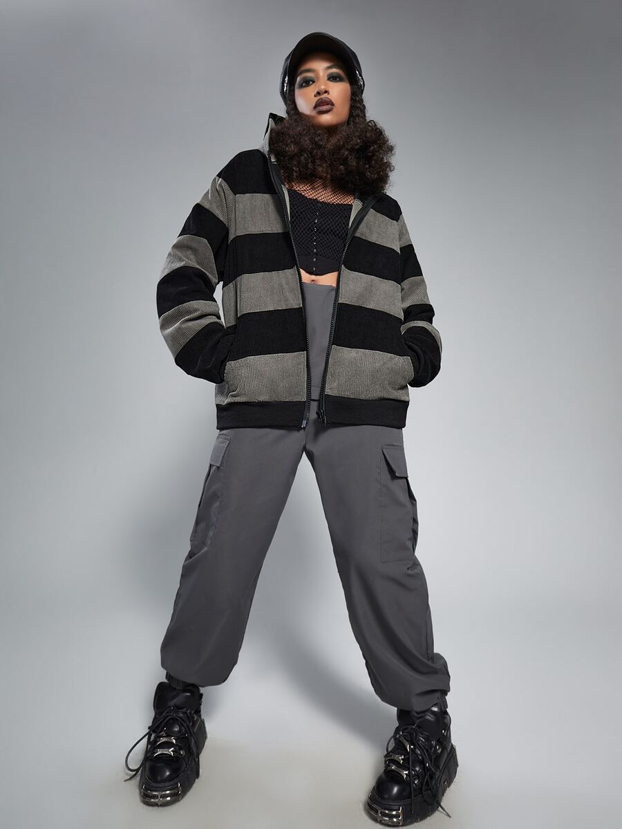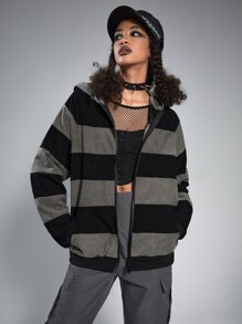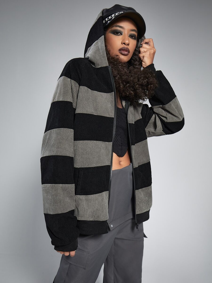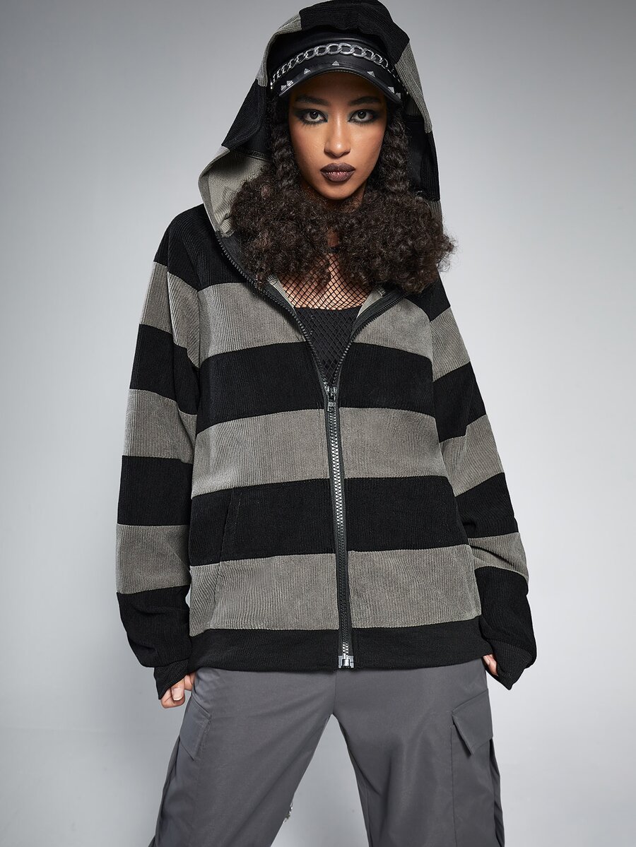 Grunge Punk Jacke mit Reißverschluss, Raglanärmeln, Kapuze