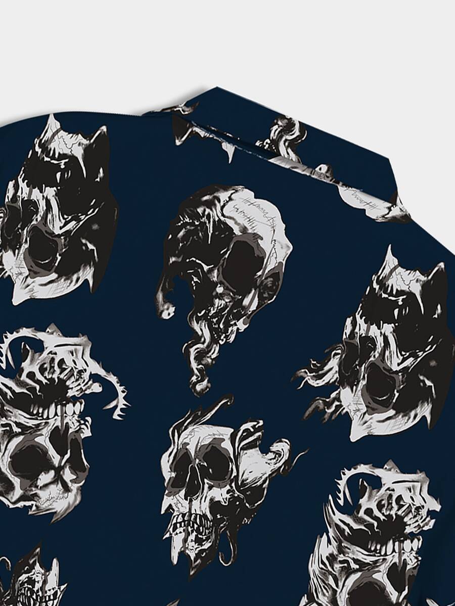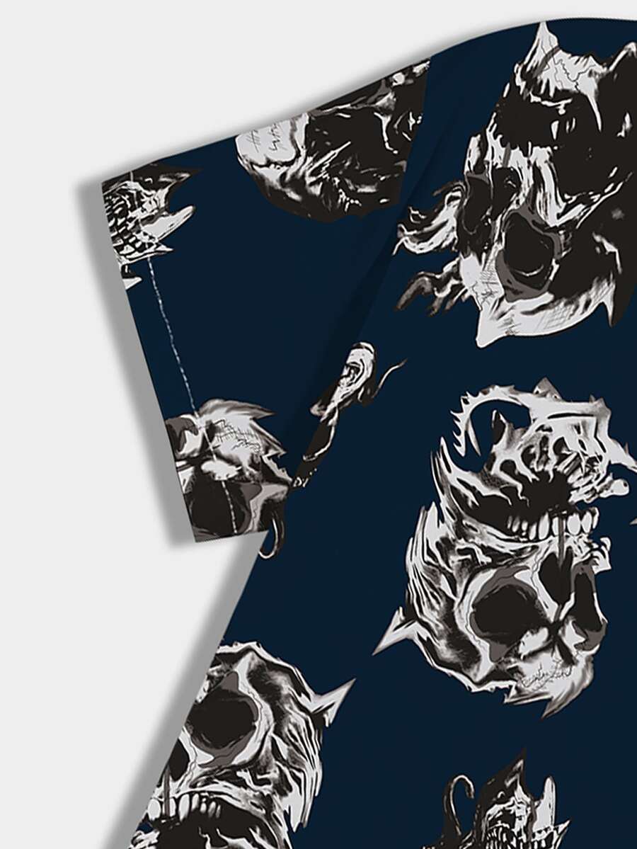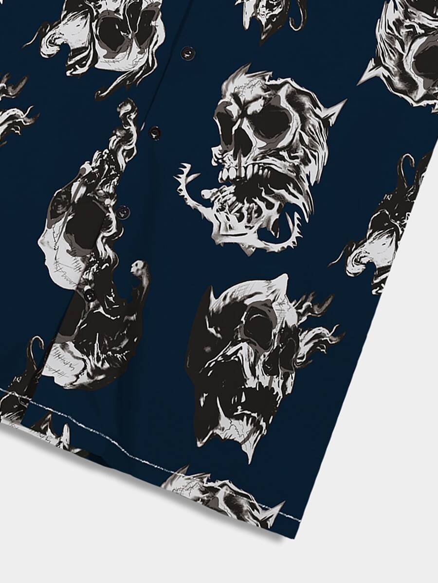 Männer Shirt mit Schädel Muster, Knopf vorne,