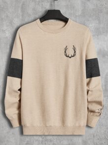GENTILAND Männer Pullover mit Geweih Muster, Kontrast Einsatz