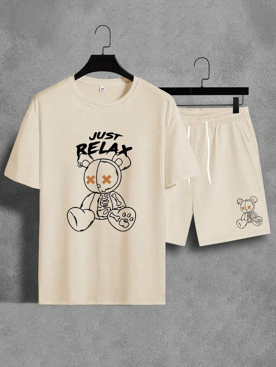 Männer Shorts & T-Shirt mit Bär & Buchstabe Grafik,