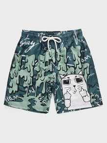 Grün Ziehbändchen Buchstaben Böhmisch Männer Bademode