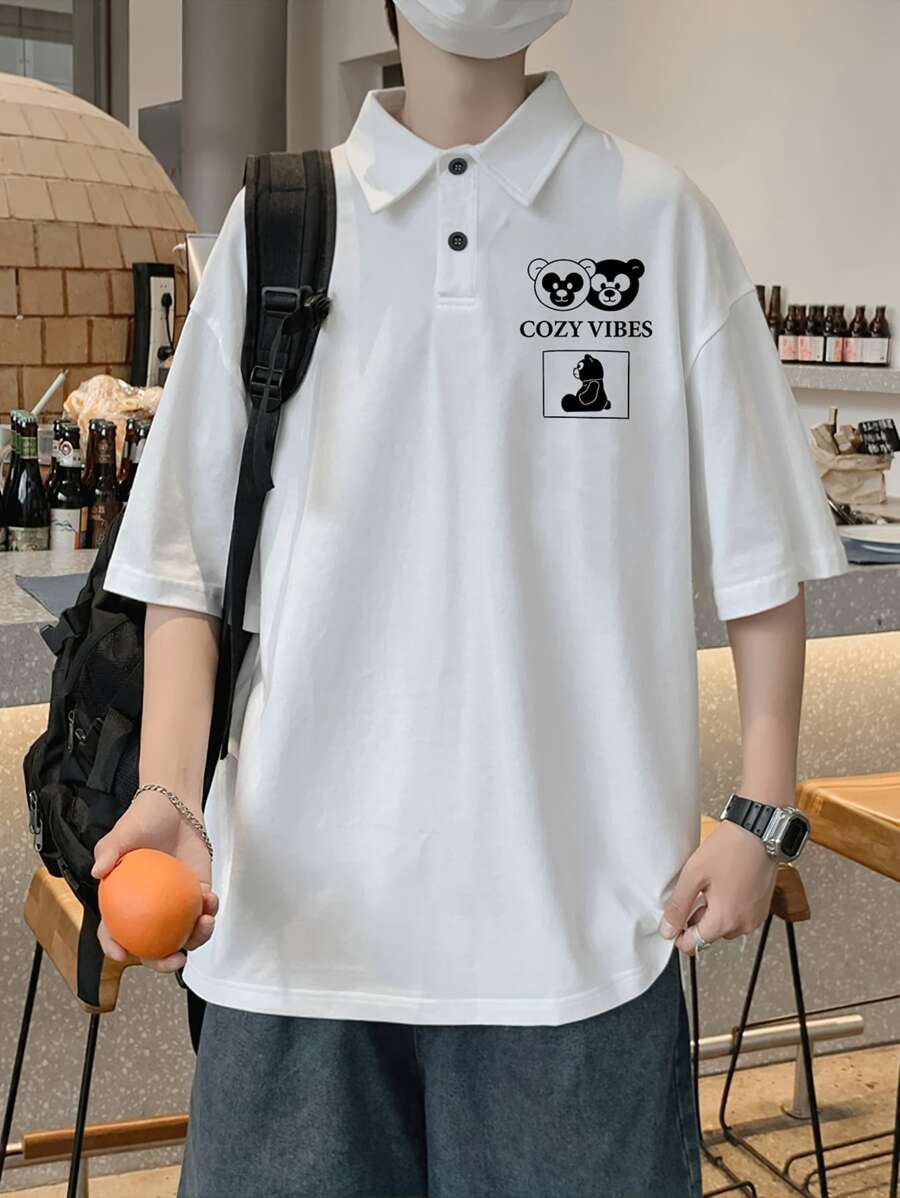 Männer Polo Shirt mit Cartoon Grafik