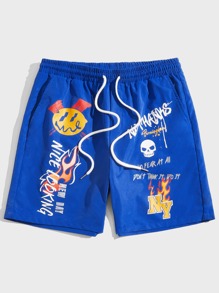 Männer Shorts mit Cartoon & Buchstabe Grafik, Tunnelzug