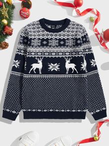 Männer Pullover mit Weihnachtselch & Geo Muster