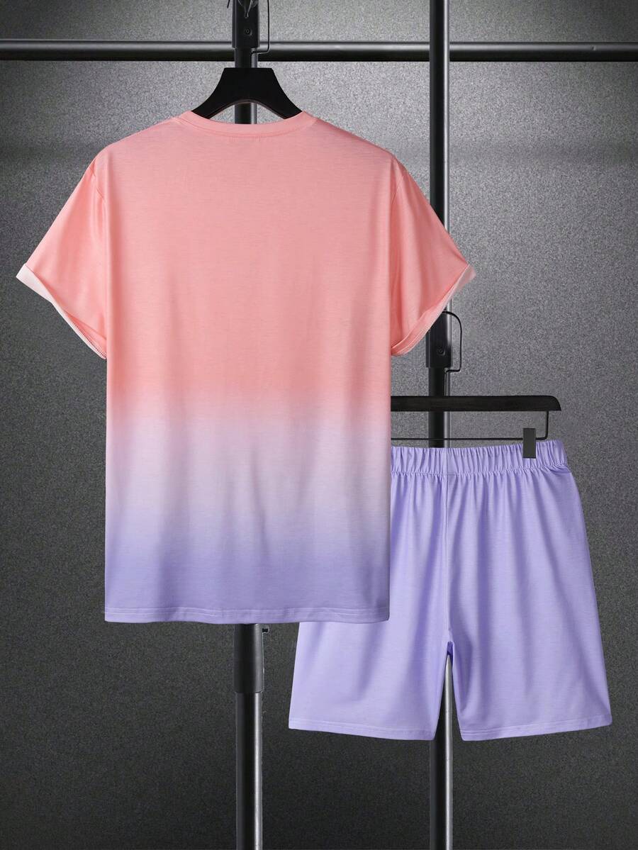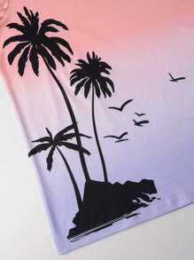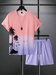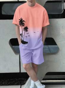 Männer Kokosnussbaum Muster, Farbverlauf, T-Shirt mit & Tunnelzug, Shorts mit