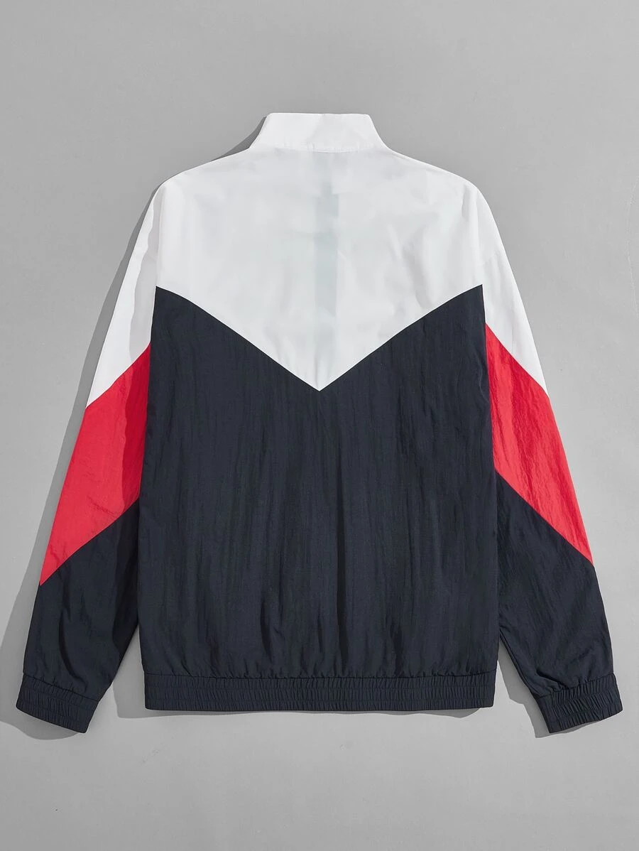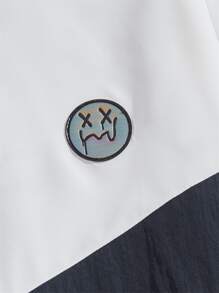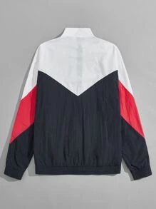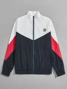 Männer Mantel mit Farbblock, Flicken Detail und Reißverschluss vorne