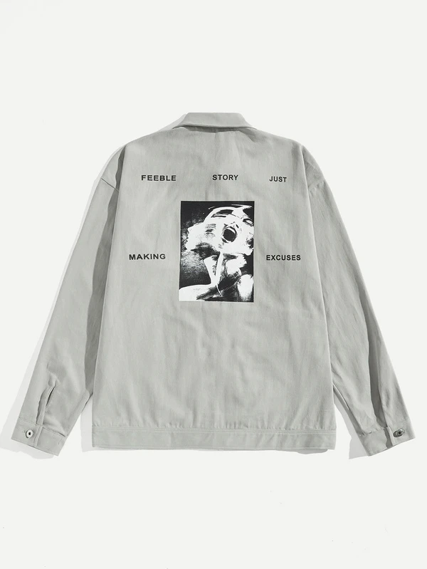 Männer Jacke mit Figur und Buchstaben Muster hinten