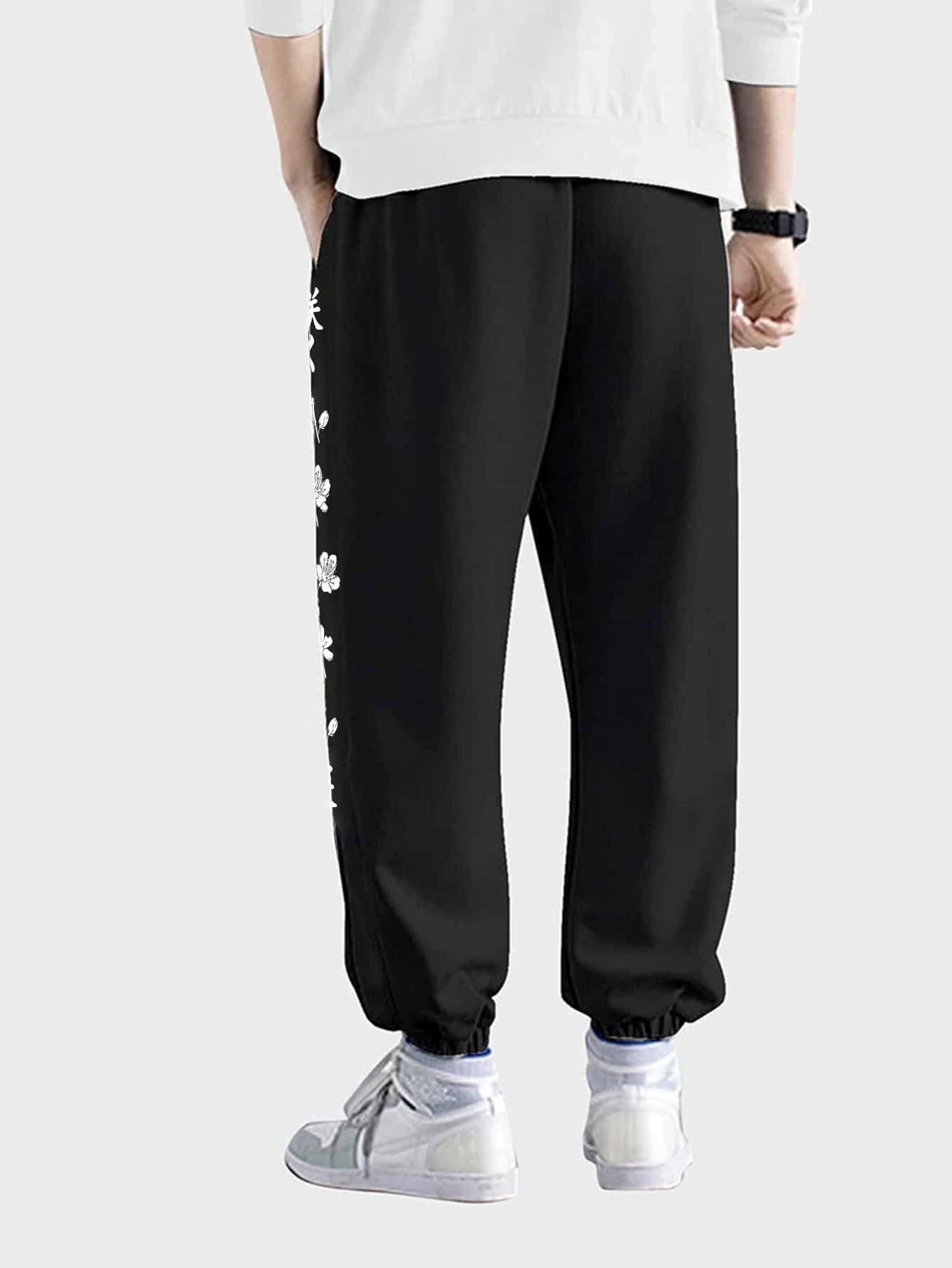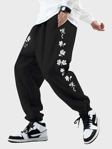 Männer Jogginghose mit Blume & japanisch Schriftzeichen Grafik, Tunnelzug