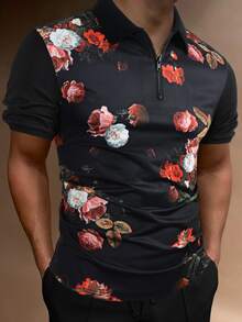 Männer Polo Shirt mit Blume Muster