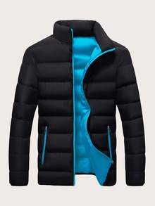 Herren Mantel mit Stehkragen und Reißverschluss, wattiert