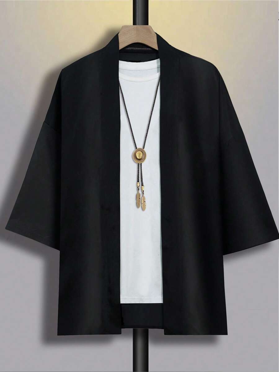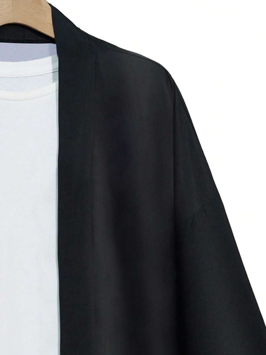 Oversize Herren Kimono Mit Japanischen Buchstaben- Und Wellendruck, Ohne T-shirt