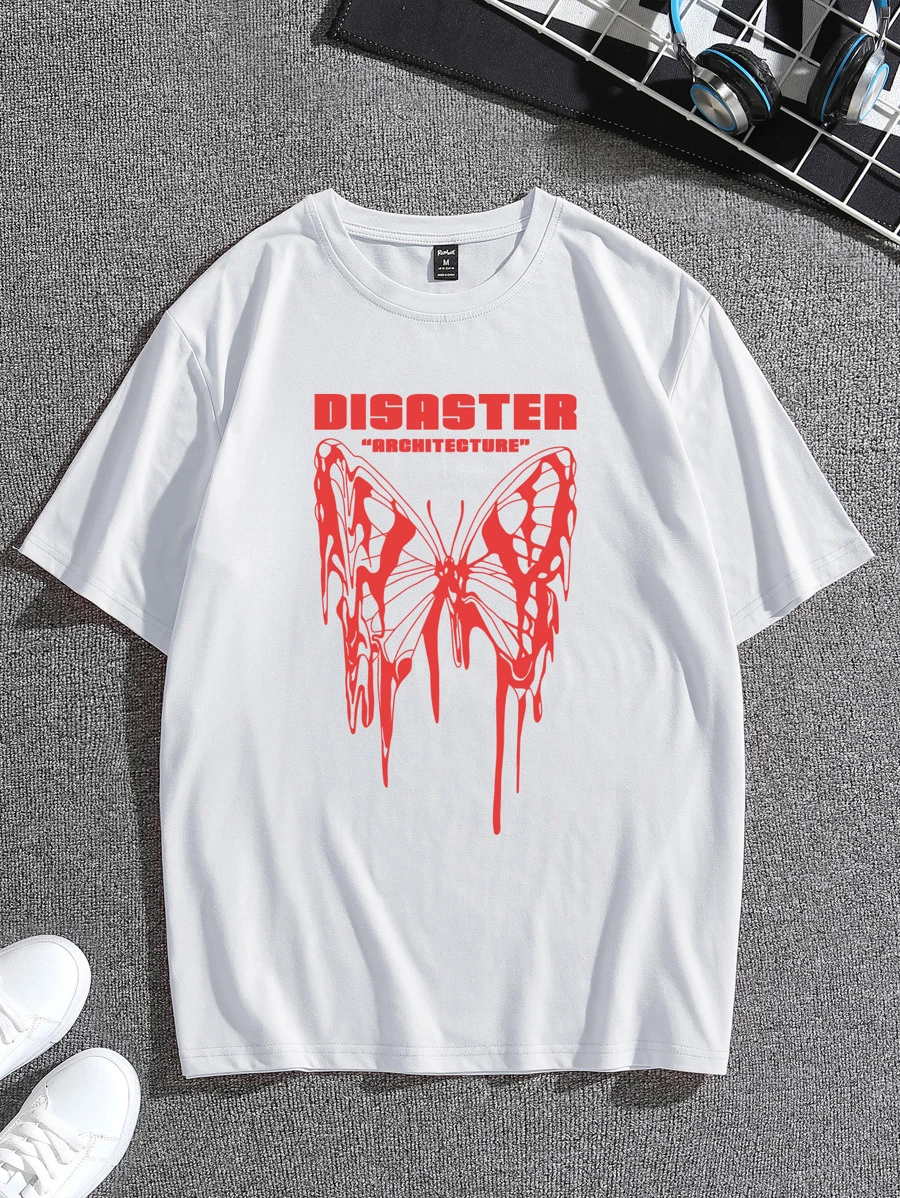 T-Shirt mit Buchstaben und Schmetterling Grafik